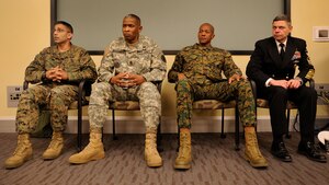 Sgt. Maj. Scott Mykoo, Defense Threat Reduction Agency command senior enlisted leader, Command Sgt. Maj. Sultan A. Muhammad, Defense Logistics Agency CSEL, Sgt. Maj. Eric J. Stockton, Marine Barracks Washington sergeant major and Master Chief Petty Officer Leland Moore, Naval District of Washington