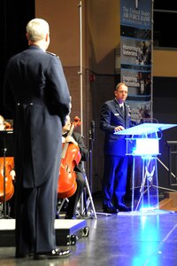The U.S. Air Force Band welcomed guest visitor and speaker Brig. Gen. Daryl L. Bohac, Nebraska National Air Guard, assistant adjutant general, Oct. 22. The performance was held at the Lincoln North Star High School, Lincoln, Neb., for the final Nebraska performance on the 25-day community relations