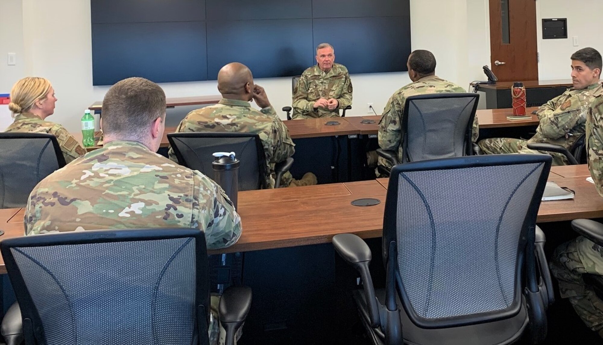 JOINT BASE ANDREWS, Md. -- Air Force District of Washington Commander Maj. Gen. Ricky N. Rupp met with Air Force students and AFDW Air Force Element leadership last week at the prestigious Marine Corps University in Quantico, Virginia. Marine Corps University is the U.S. Marine Corps Professional Military Education proponent. Through its resident and non-resident programs, the MCU develops the professional competence of its Marines, other service, international, and civilian students. Graduates are prepared to perform with increased effectiveness in service, joint, interagency, intergovernmental, and multinational environments at the tactical, operational, and strategic levels of war, across the range of military operations.