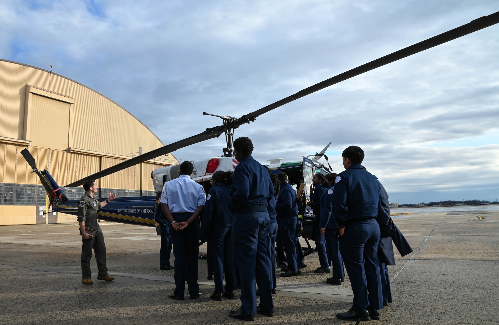JOINT BASE ANDREWS, Md. -- The excited chatter of 48 Junior ROTC cadets from Charles H. Flowers High School filled the 1st Helicopter Squadron at Joint Base Andrews, Md., Jan. 13, 2023.