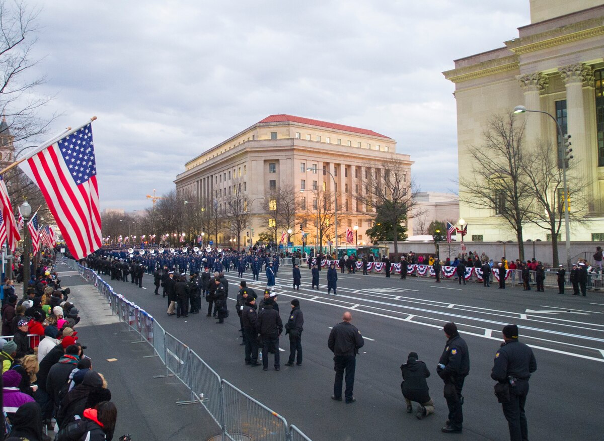Air Force cordon members test their radios as they prepare for the 57th Presidential Inaugural Parade Jan. 21, 2013 in Washington. Providing an Air Force cordon was one of the many ways the Air Force supported the inaugural events. Other support came from Air Force Bands and Choruses, Honor Guards, Marching Units, Reserve and Guard, as well as myriad contingency, communication, and command and control operations taking place behind the scenes. (U.S. Air Force Photo by 1st Lt. Ashleigh Peck)