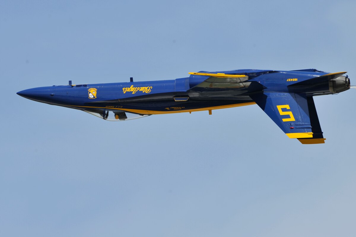 The United States Navy Blue Angels demonstration team performs during the Joint Service Open House, May 18, 2012, at Joint Base Andrews, Md. This year's Joint Service Open House celebrates the Centennial of Marine Corps Aviation. JSOH affords the public an opportunity to meet the men and women of the Armed Forces while viewing over 100 static displays and 19 aerial demonstration teams. (U.S. Air Force photo by Senior Airman Perry Aston)